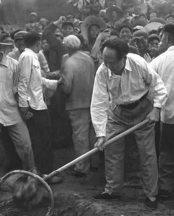--周总理参加修水库在推车运土