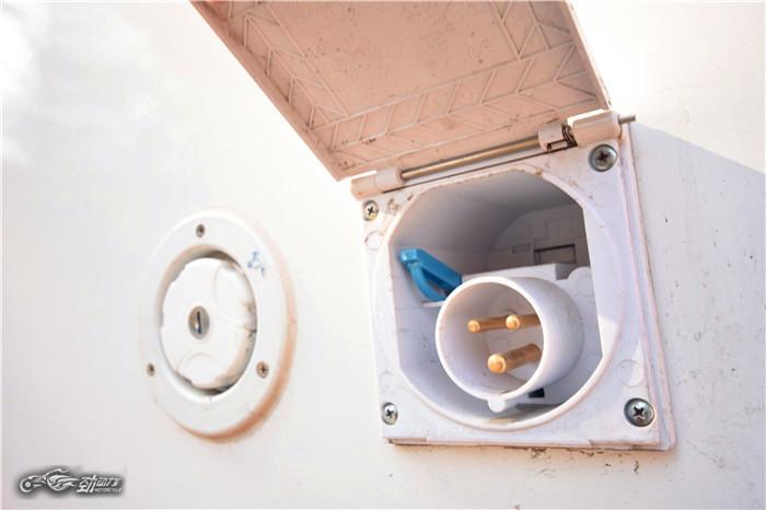 房车的充电接口,可以在有条件的露营地为房车充电。
