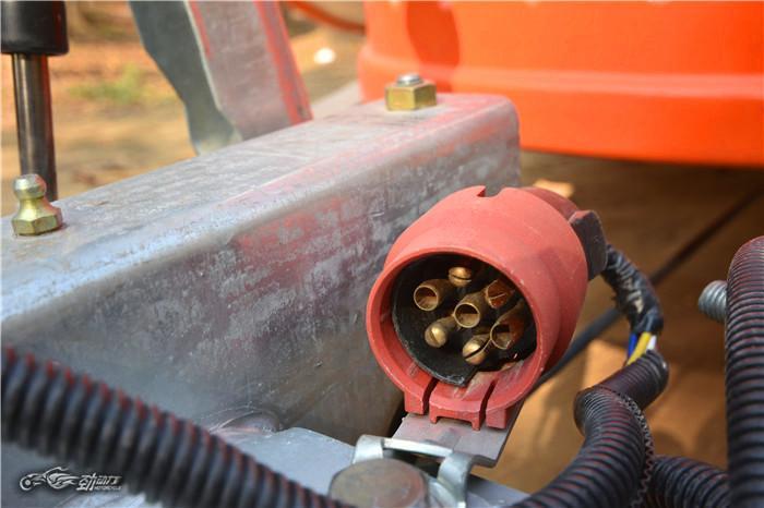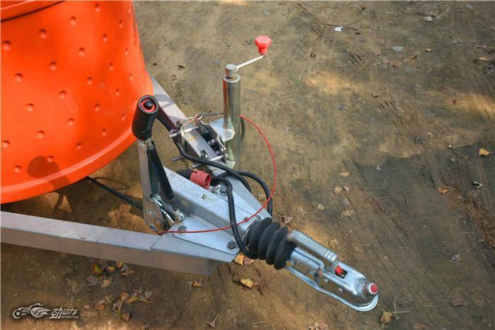 来自德国爱科AL-KO撞刹连接系统,能有效缓解冲击。手制动、灯管电源接口、拖挂保险等一应俱全。