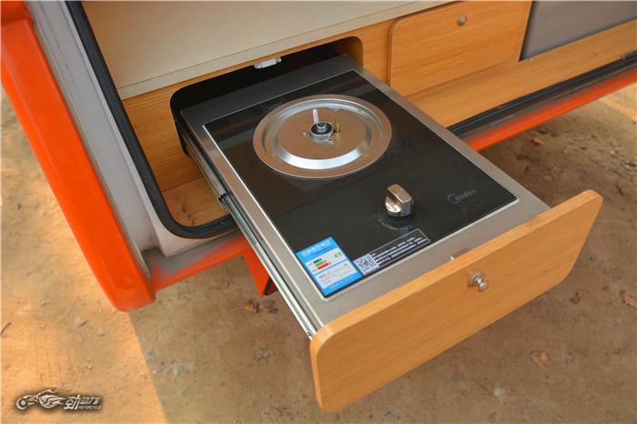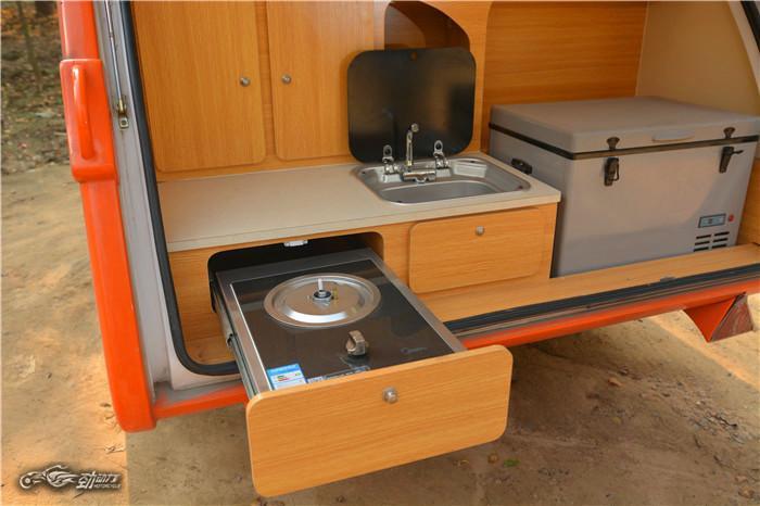 掀开后盖板,一个移动厨房呈现眼前,这也是它最神奇的地方。