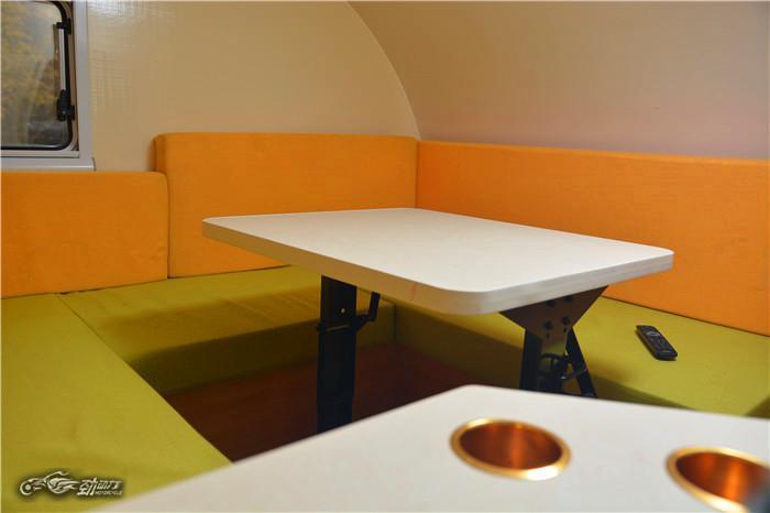 房车内部就像是一个“榻榻米”,面积为5.6平米,可容纳3-4个人。