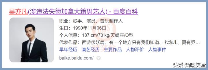 如今吴亦凡在百度上的介绍,已经和一个月前的画风完全不同。
