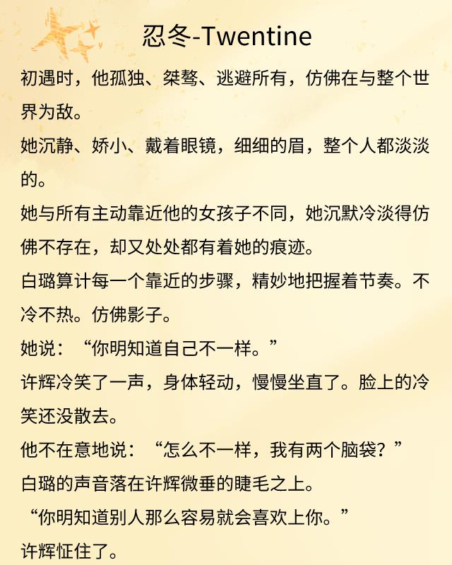 实际上他很聪明却温柔,他后来知道了白璐接近自己的原因,但也还是没有放弃追随她的脚步,最终也成为她的校友。