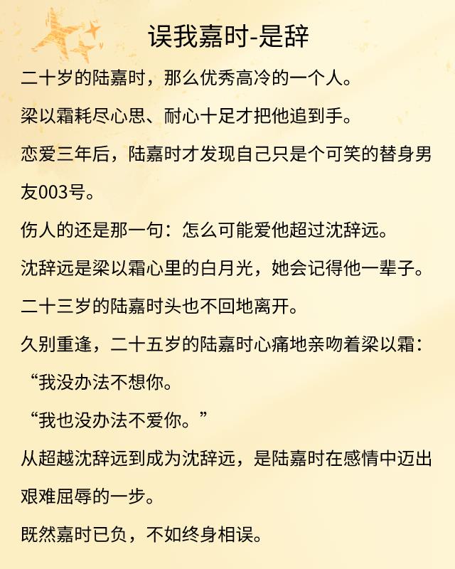 虐男主久别重逢文《误我嘉时》《忍冬》《我和男神离婚后》