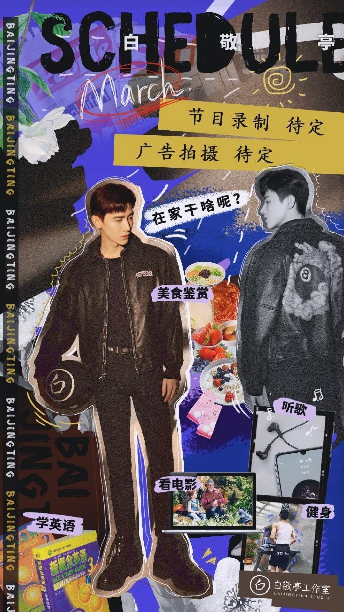 来了来了!白敬亭有行程的三月行程表来了!虽然节目录制和广告拍摄都是待定,但白鸽们好歹是有点盼头了,更何况图上的“美食鉴赏”和“在家干啥呢”一看就是会给物料的样子!
