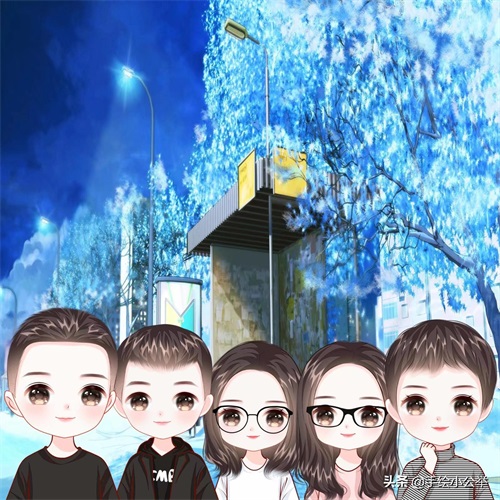一家四口五口卡通真人手绘全家福,可爱呆萌,有趣有意思..