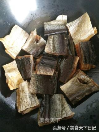 3干活里倒油烧热,放入腊鱼中小火干煎。