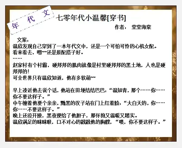 5、《七零年代小温馨[穿书]》——堂堂海棠
