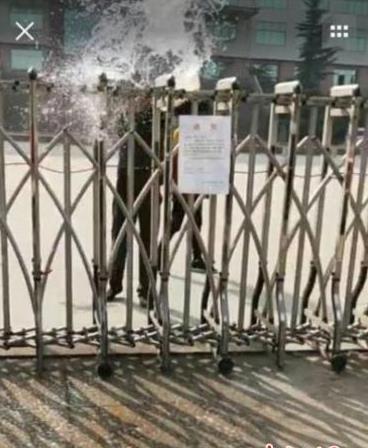 根据视频显示,一学校工作人员隔着关闭的电动式伸缩大门,向校外泼水,同时配有快递员配音称向该校送快递时,遭到泼水。