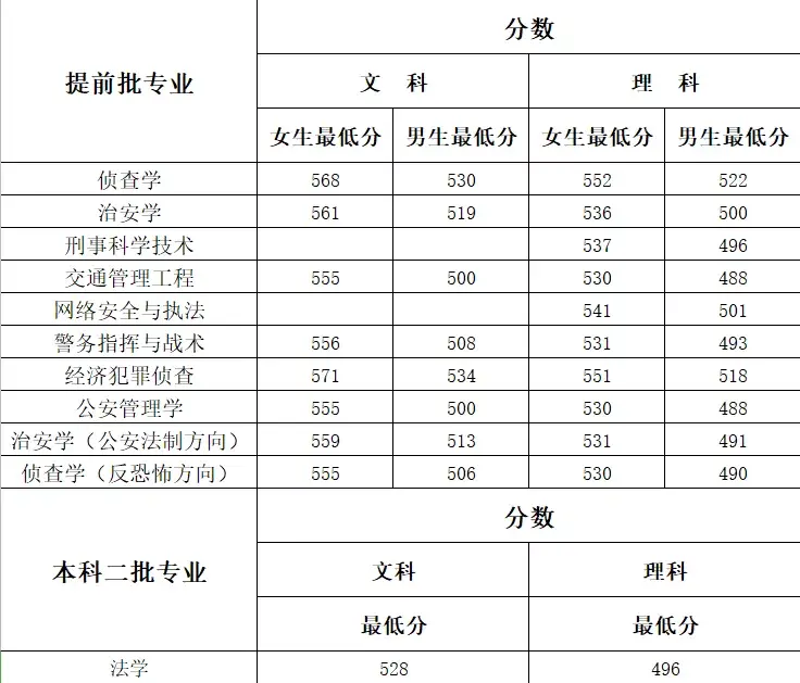 以下是河南警察学院近三年各专业录取分数线