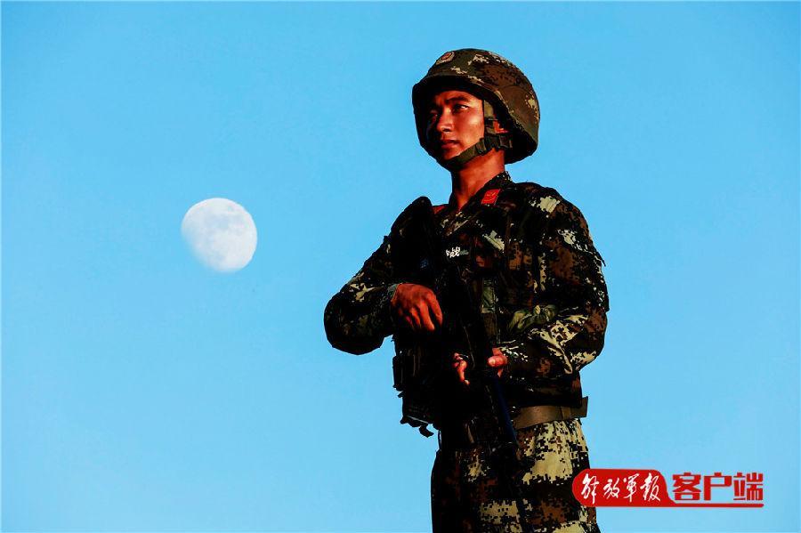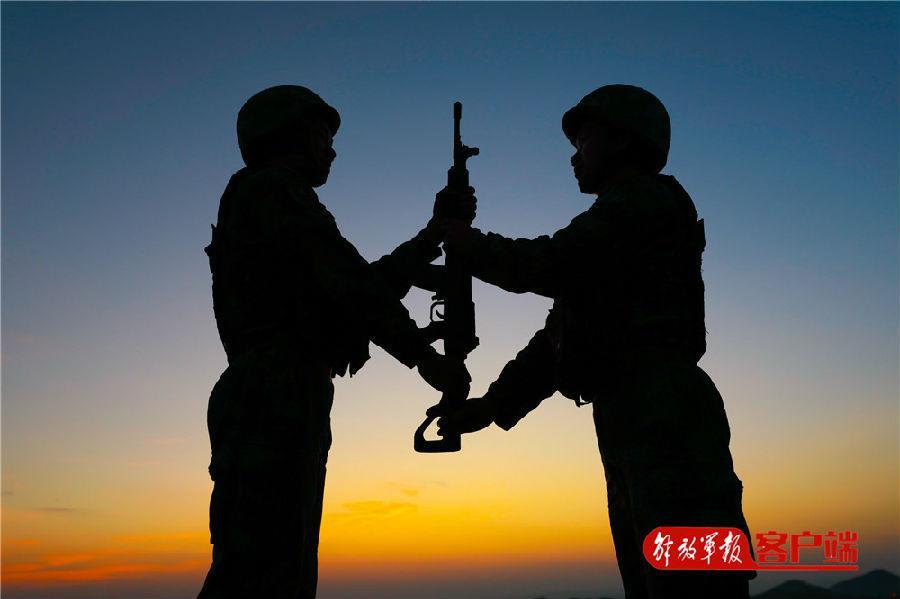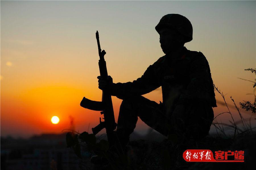 没有清晰的面孔,夕阳下兵哥的身影却帅气逼人