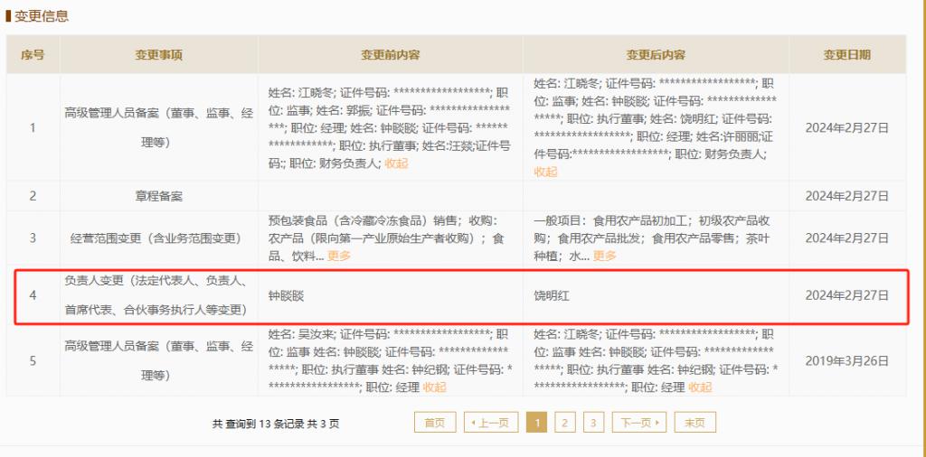 钟睒睒卸任浙江农夫实业法定代表人,去年以来已卸任12家