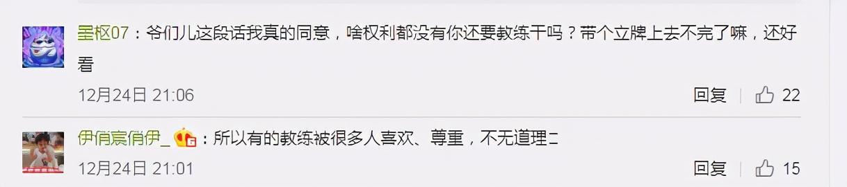 李九说:傀儡教练的话站着就好,什么都不必,因为本身没有能力,拿着工资背好锅就行。但是我认为这样的队伍走不远。这段话让人看了非常不舒服,一方面李九说教练应该有自己的权限,一方面又说傀儡教练的话站着就好,什么都不必。这样的观点简直不能让人认同,一个没有用冠军证明过自己的教练,他的努力也应该被尊重,每一个努力活着的人都是优秀的,在通往成功的路上拼搏过了,无论他成功与否,做到问心无愧就好,而不是所谓的什么都不必。