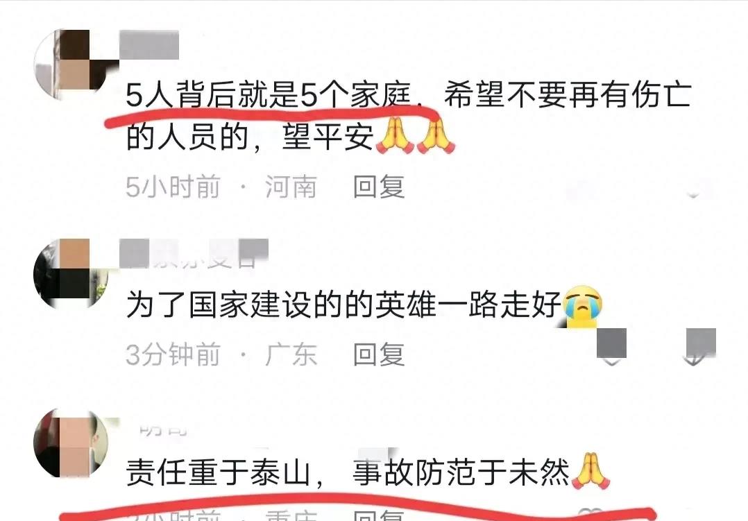 事故发生后,公众对死伤工人和他们的家人表示了慰问与哀悼。网友纷纷留言称,这起事故令人痛心,5个工人和5个家庭的损失无法用金钱弥补。