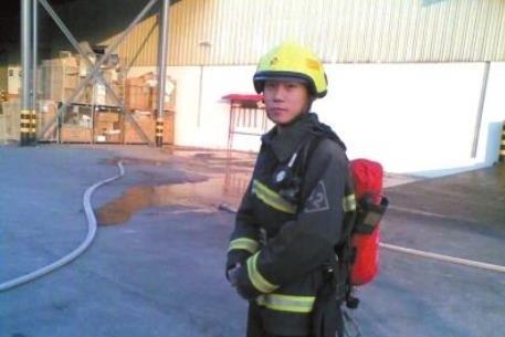 身为消防员,在接到任务时,第一时间赶到救火现场。