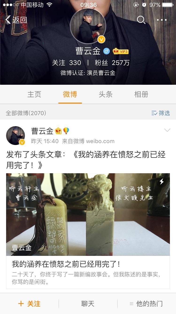 9月5日,曹云金微博发布几千字长文斥责师傅郭德纲的罪行,其微博“声泪俱下”仿佛受了天大的委屈。