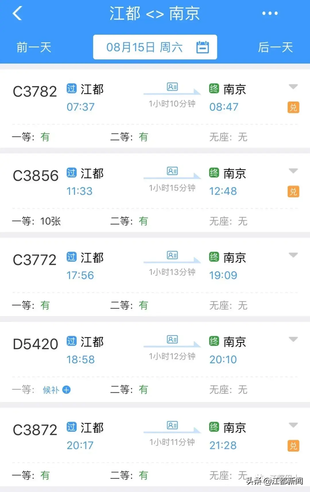 新增至上海方向动车组列车,江都至南京车次也由原来的3列增加至5列 。南京至江都由原来的3列增加至4列,并且在时刻上做了优化!极大的方便了江都市民的出行!