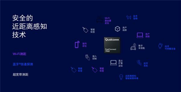 FastConnect 7900 集成超宽带技术、Wi-Fi 测距和蓝牙信道探测,峰值速度可达 5.8 Gbps,并支持具有空间音频和 ANT+ 功能的蓝牙 5.4 标准。
