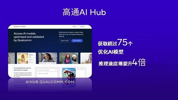 为了更好的发展 AI 能力,高通在这次 MWC 上还发布了高通 AI Hub,将支持超过 75 个优化 AI 模型,开发者运行 AI 推理的速度将提升高达 4 倍。