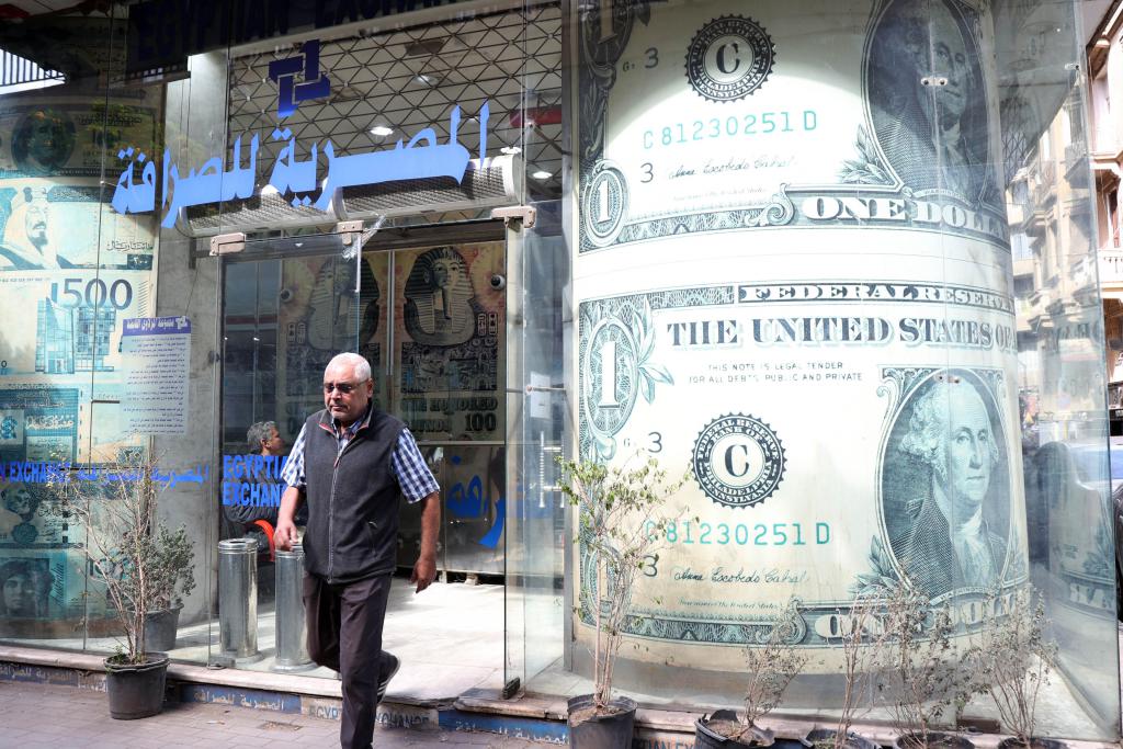 3 月 6 日,一名男子走出埃及开罗的一家货币兑换点。图片来源:新华社发(艾哈迈德 · 戈马摄)