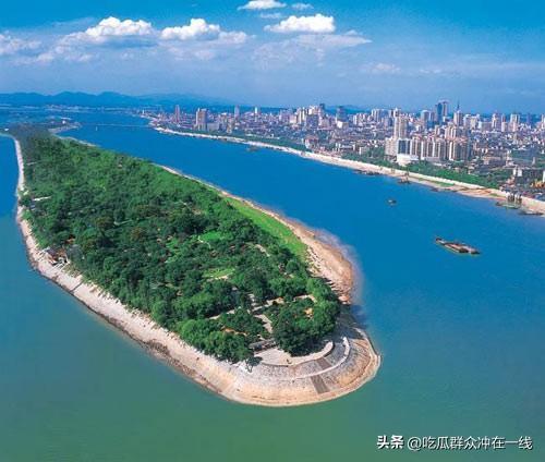 是湘江下游众多冲积沙洲中面积最大的沙洲,被誉为“中国第一洲”, 由南至北,横贯江心,西瞰岳麓山,东临长沙城,是湘江两岸风景中最耀眼的明珠。