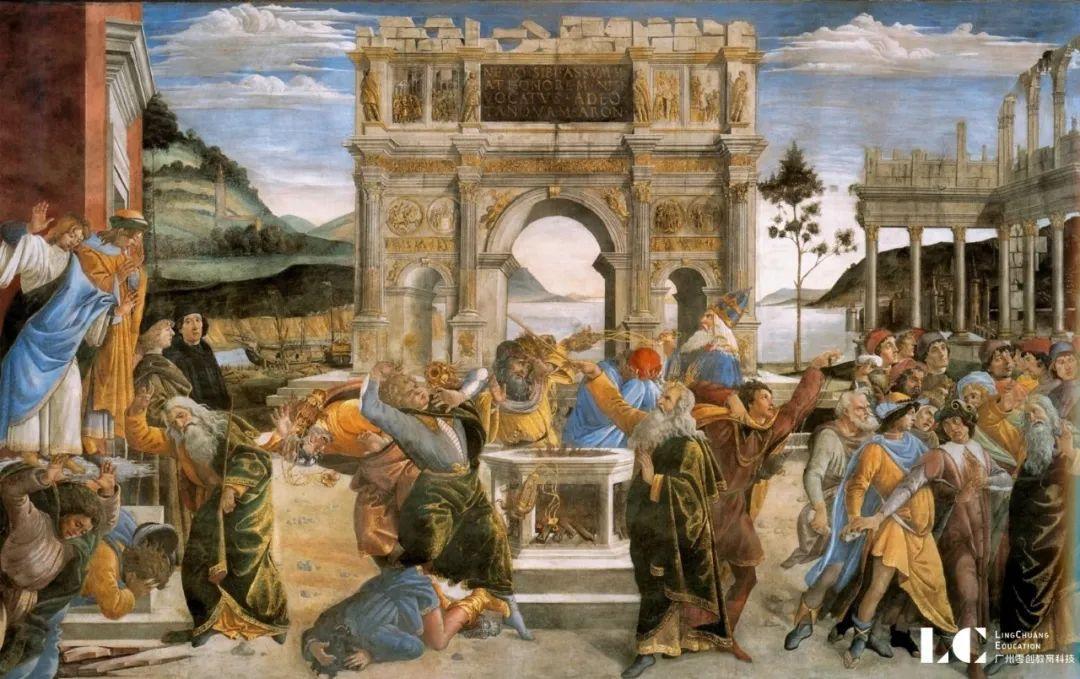 山德罗·波提切利 可拉的惩罚,1481-1482年,壁画,3.45×5.72m