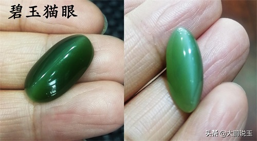 其中最独特的要说碧玉猫眼,因为某些位置玉石纤维排列走向一致,形成特殊的光学效应,似猫咪的眼睛,称之为猫眼,产量非常少,受到很多收藏玩家的喜爱。其中猫眼线越直,越细,价值就越高,难得一见。