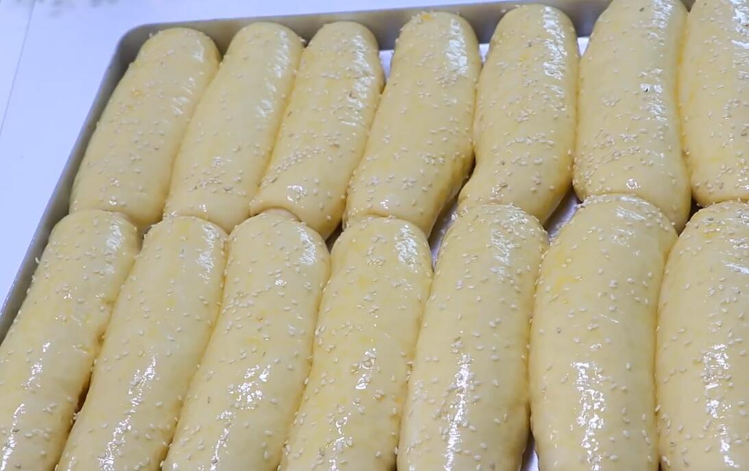 11:撒上芝麻5g,撒均匀美味的烤面包胚子就做好了