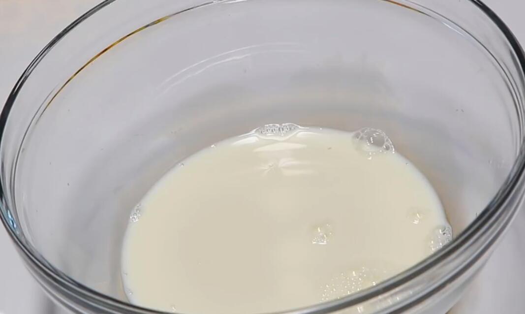 1:先准备200ml纯牛奶,加入白砂糖70g搅拌成牛奶糖,这样充分搅拌方便之后快速的发面和溶解酵母粉,这个步骤牛奶可以增加面包的香气和口感,吃起来奶香味十足