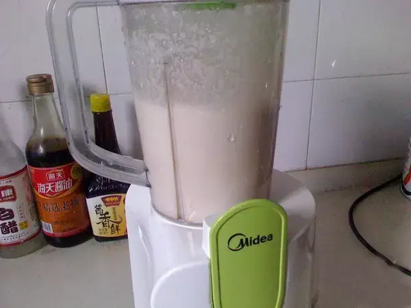 2、浸好的大米倒入搅拌机打成米浆