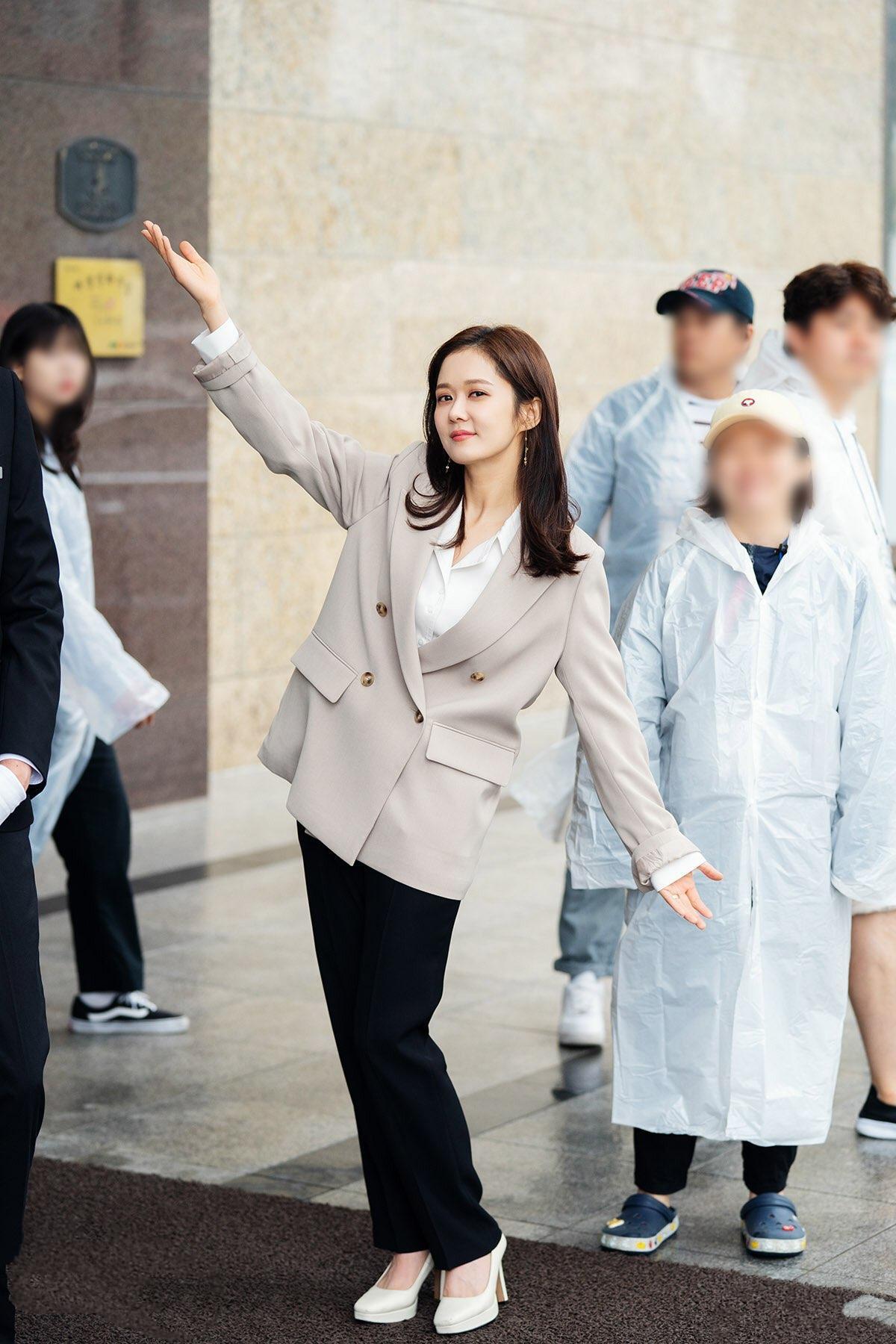 张娜拉的搭配都非常到位,虽然整体搭配低调,看似随意洒脱,其实又很多加分值得推敲的小细节。比如剧中出现的浅灰色西装套装,她选择搭配了轻薄舒适又有质感的白色衬衫配一双白色圆头高跟鞋,西装微翻领的设计,让整个LOOK瞬间变得低调却很高级。减龄的中长发软化了灰色西服的死板,使整体造型不会过于庄重严肃,还透露一丝温婉大气的韵味,而且显明得更高档了。
