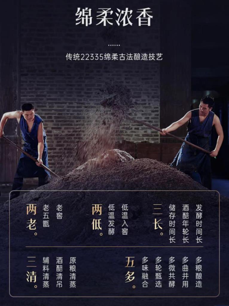 洋河的“22335绵柔古法”为河蓝色经典遥之蓝的酿造提供了坚实的基础。这一酿造工艺的精髓在于“两老”(老五甑和老窖),保证了酿造过程的精准和传统风味的延续;“两低”(低温发酵和低温入窖)则确保了酒液的稳定和香气的完整;“三长”(储存时间长、酒醅年轮长、发酵时间长)赋予了酒体更加丰富的层次;而“三清”与“五多”则是对原料和工艺的精心选择,保证了酒质的高品质。