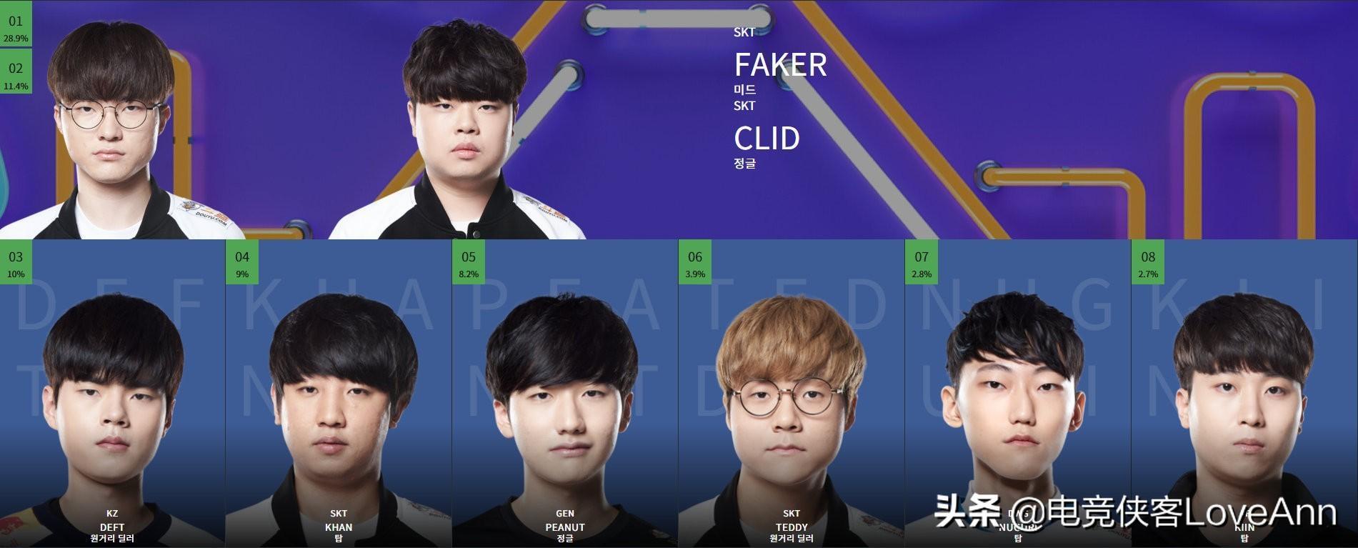 LCK全明星最新情况:faker得票率遥遥领先 SKT三人进入前五