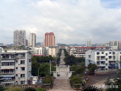 白鹤公园建于山上,车可以直接停到公园牌坊下面,也可以开上山。我沿公园阶梯而上,很快登顶在山顶可以俯瞰整个大英县城。