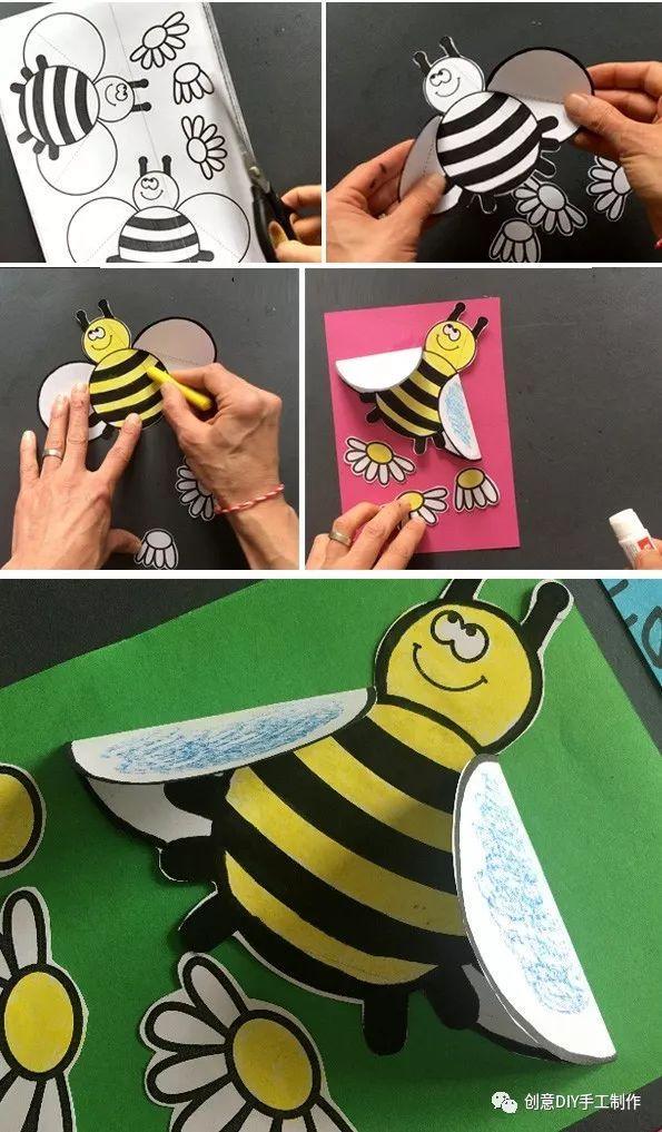 材料和工具:模版、彩纸、蜡笔、固体胶、剪刀