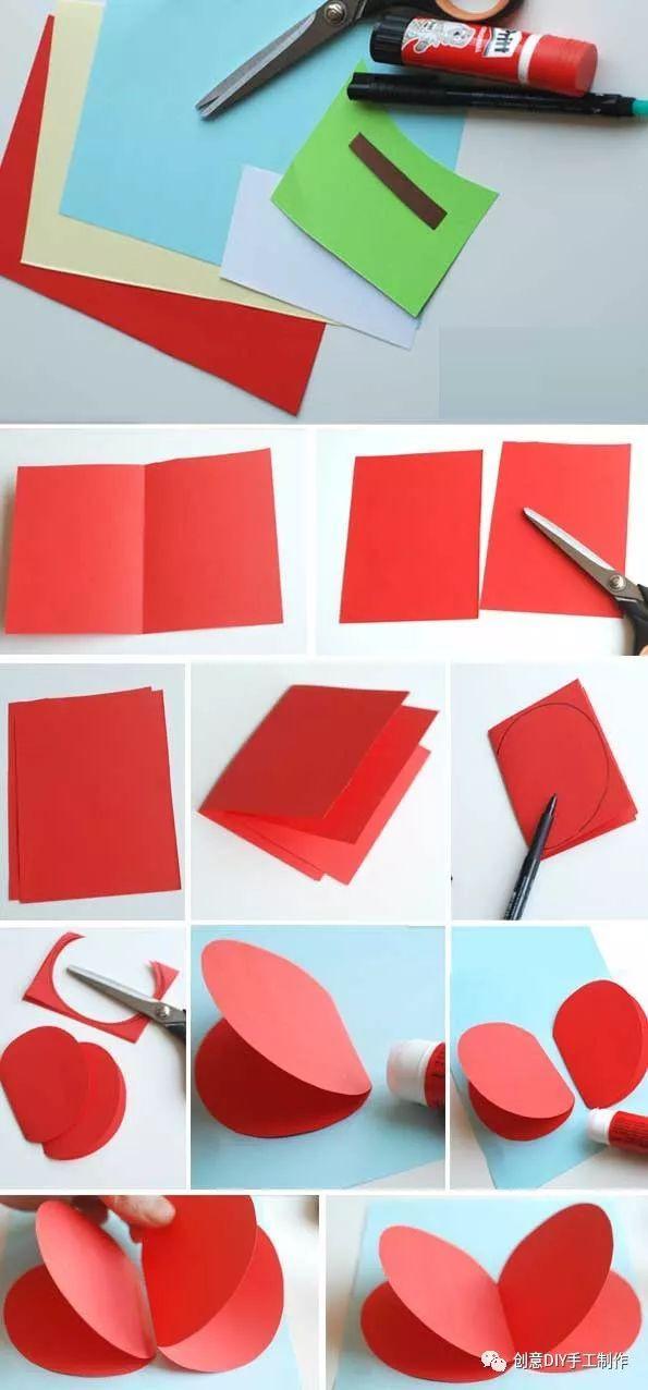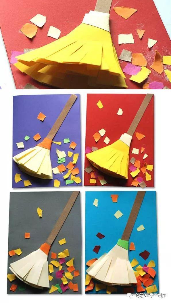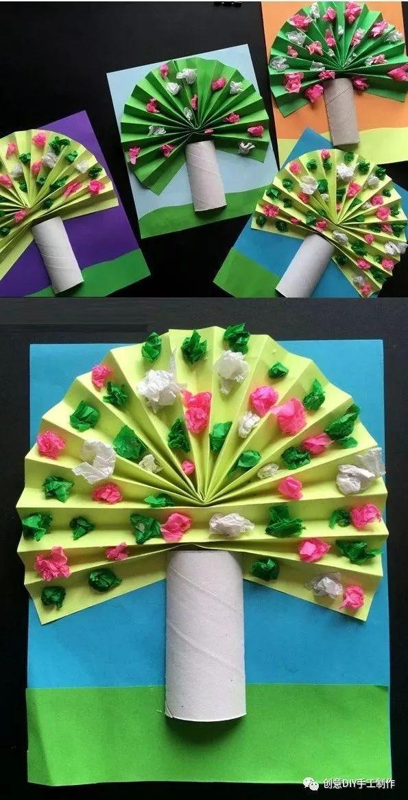 材料和工具:彩纸、手揉纸、纸筒、固体胶、剪刀