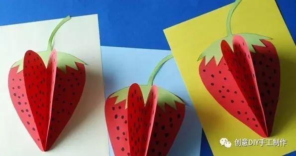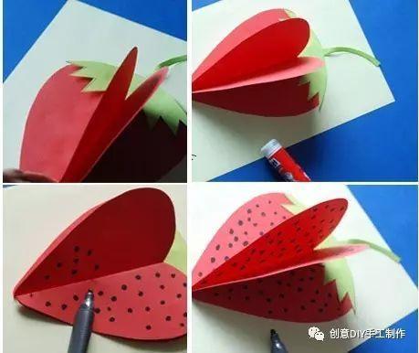 4.接着就可以粘贴草莓的头部,然后用水彩笔点上草莓籽