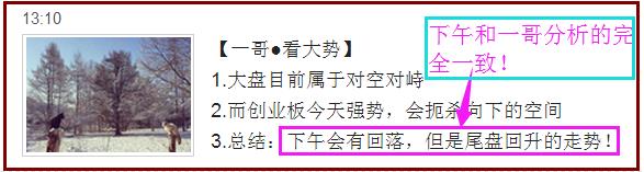 (2)一哥午间股评看:下午回落然后回升,趋势判断准确!
