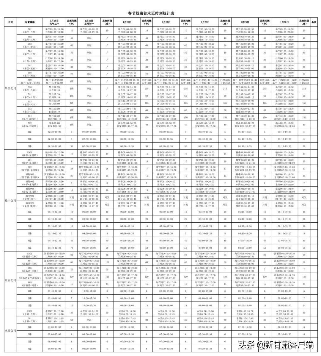 1月25日(正月初一)以实际报班情况为主目前预计安排白银、会宁、静宁、靖远、西峰、平凉线路;