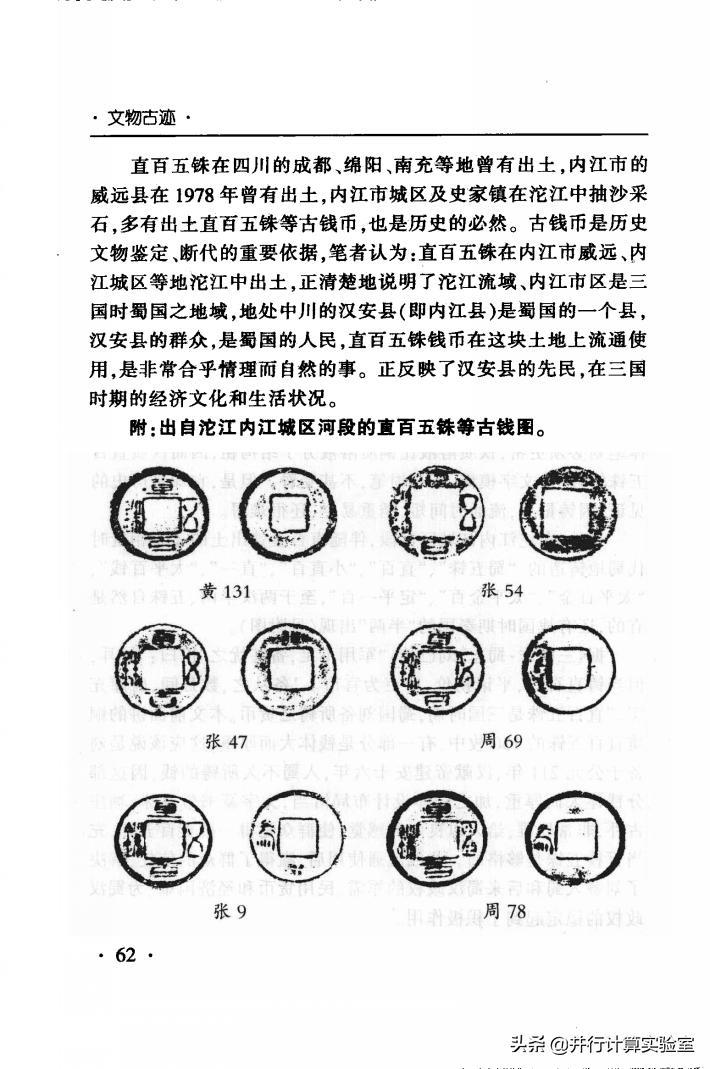 ⑦据《内江文史》第25辑文章《出自沱江内江城区河段的直百五铢》记载:近年来都还能从挖沙船的河沙中发现直百五铢。