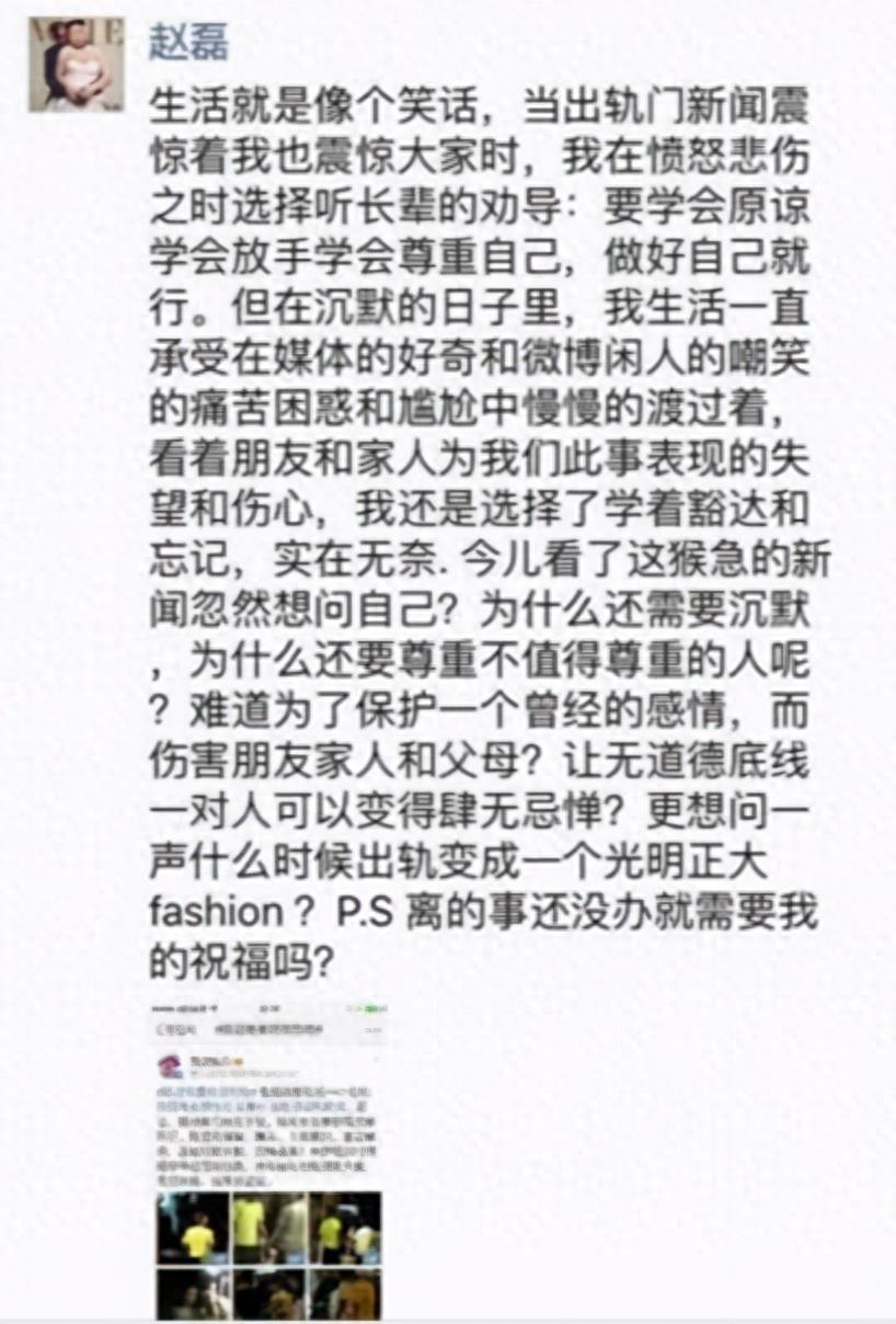 就这人家还不承认,虽然发表了公开道歉,但也只是说和赵磊是普通朋友关系。