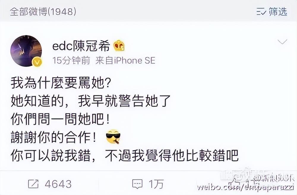 虽然陈冠希早年间的“艳照门”让他在国内基本上一片差评,但人家当即认错、宣布无限期退圈也算是有个交代。