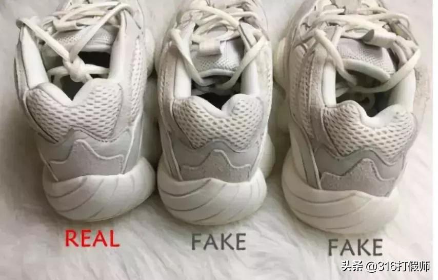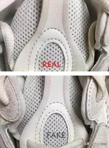 下面全面对比yeezy500骨白配色,REAL代表真,FAKE代表仿,从几个细节去对比,尽量对比得简单易懂。