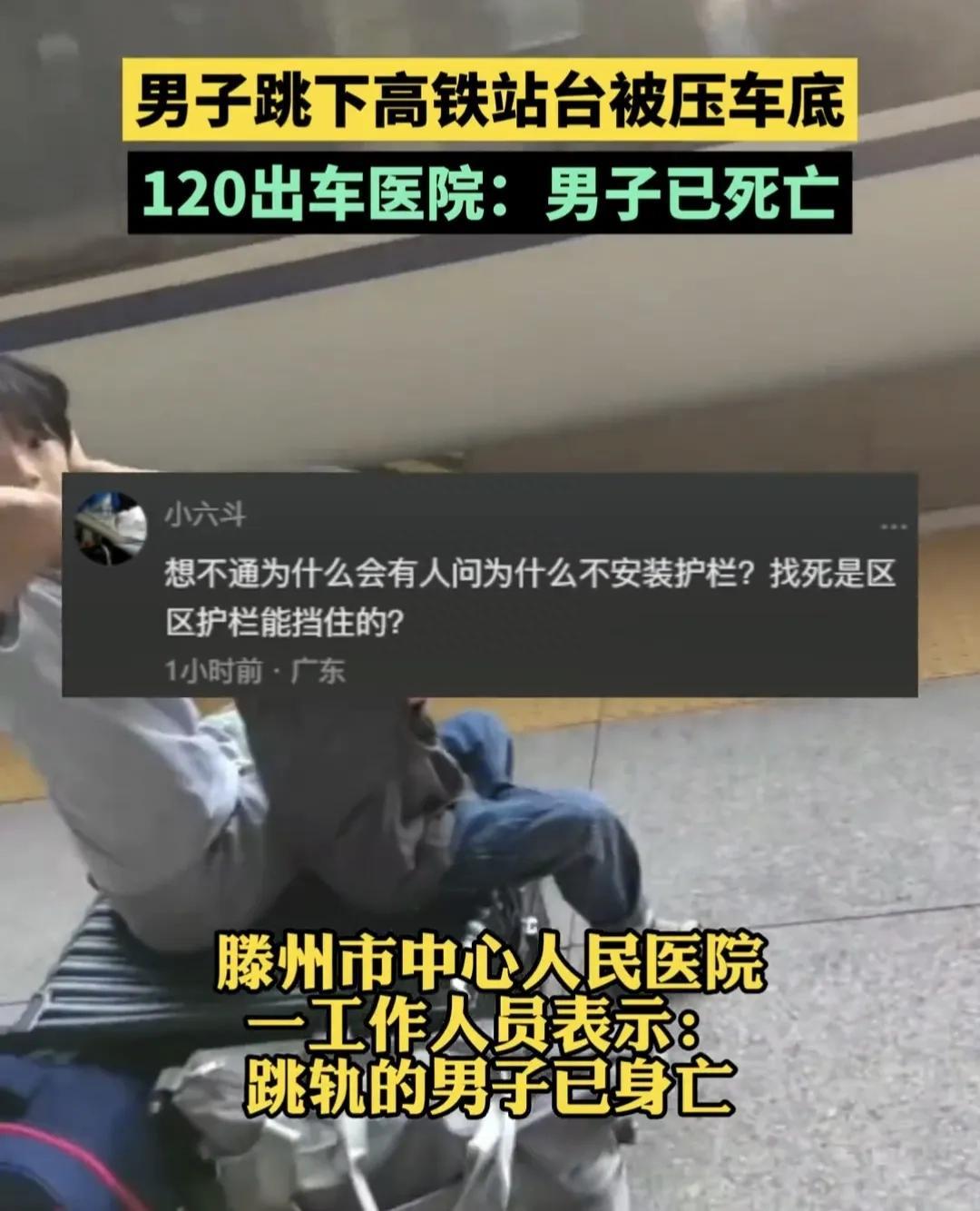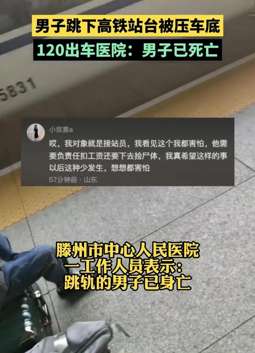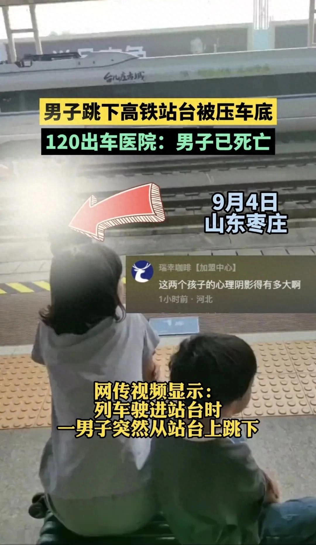 滕州高铁站一男子突然跳下站台,列车刚好开过来,男子当场死亡,画面太恐怖了,当时旁边还有两个孩子看着,列车直接从他身上碾过去,他们心里面留下的阴影该有多大呀?