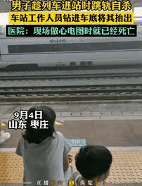 山东枣庄高铁站,一列车驶进站台时,一男子突然从站台上跳下,列车从男子的身上碾过去。