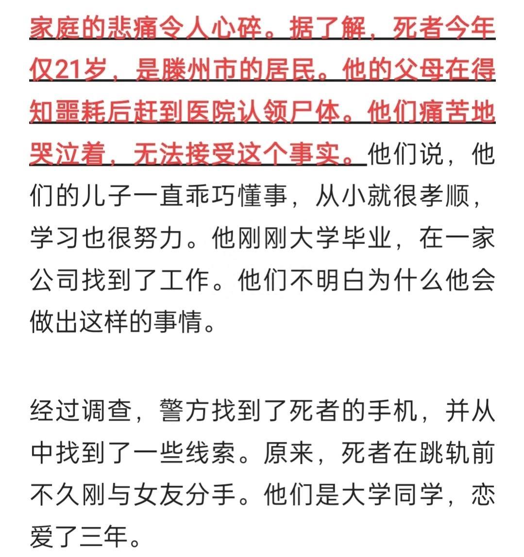 滕州一男子跳进高铁轨道死亡,男子信息曝光,双亲痛哭认领遗体