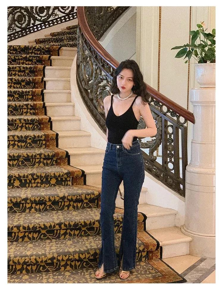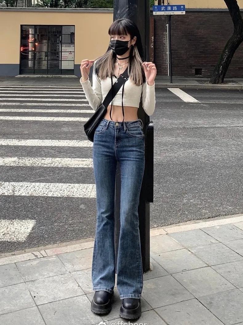 梨形身材的宝宝们可以选择微喇的阔腿裤或者是直筒阔腿裤,直筒造型的阔腿裤遮住大腿的缺点,牛仔阔腿裤背后看还显得腿很翘哦!显腿长!遮胯宽!