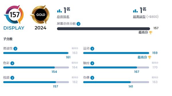 具体来看,在影像、自拍、电池、屏幕、音频五大项评测中,荣耀 Magic 6 Pro 均拿下总分第一。