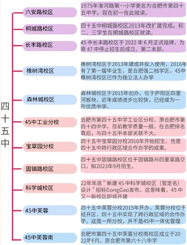 合肥45中本部作为合肥初中排名靠前的超档学校,学习压力可想而知,选择45中一定要注意孩子的心理抗压能力以及学习进度或难度规划,目标名校的家长推荐优先选择45中,目标普高的家长也可以选择45中(90%以上普高达线率),但心理抗压比较弱的成绩不是比较好的不推荐。