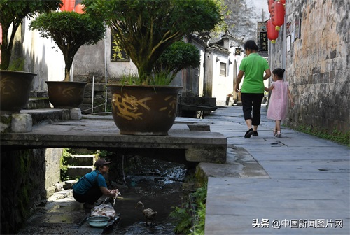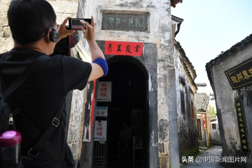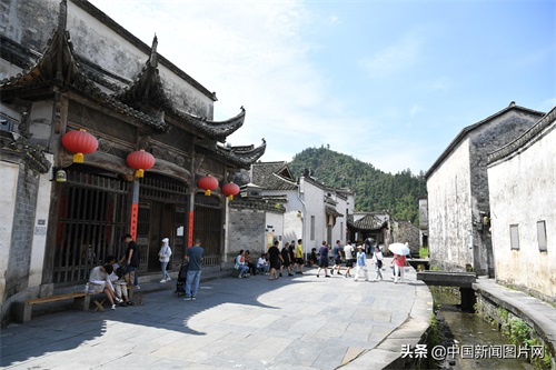 7月16日,游客在西递古村落参观。中新社记者 韩苏原 摄